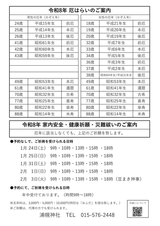 お神札・お守りの郵送希望の方はこちらで受付しております。