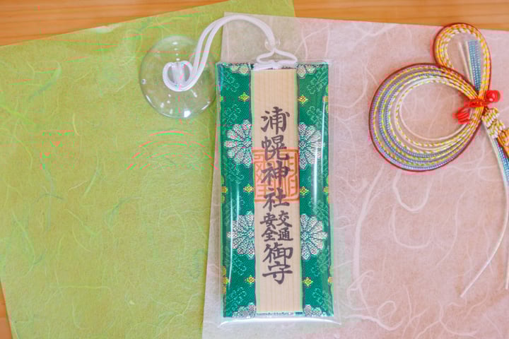 自動車の運転中に交通事故から身を守るお守りとして、車内におまつりください。(吸盤付き)