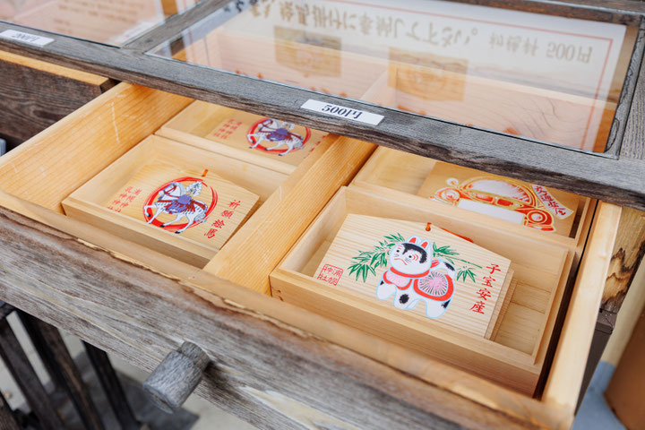 各自の願い事を書いて祈願し、賽銭箱右横の「絵馬奉納所」へご奉納下さい。