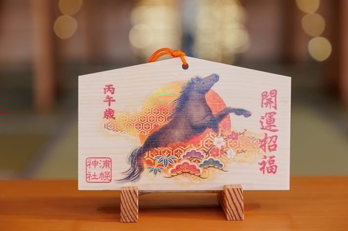 当神社の「干支絵馬」は、その年の干支をデザインした絵馬です。