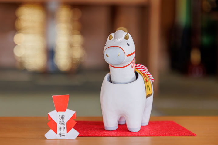 白馬は、神馬(しんめ)といって神様の乗り物です。ご家庭におまつりすることで、幸福と開運を運んで来てくれます。
