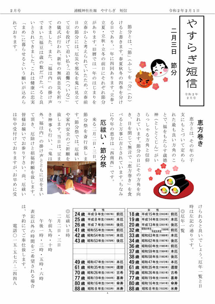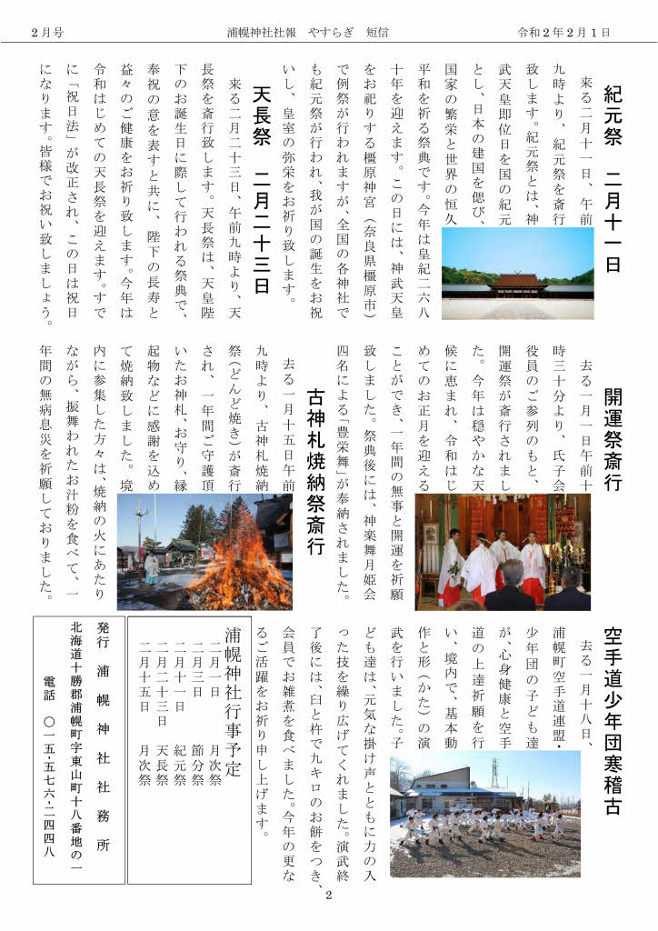 浦幌神社「やすらぎ短信」令和2年2月号発行