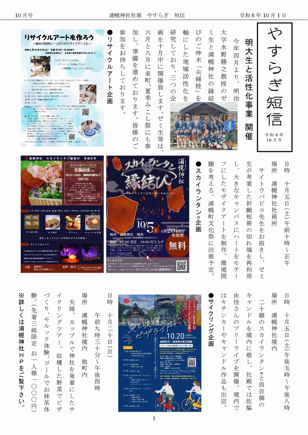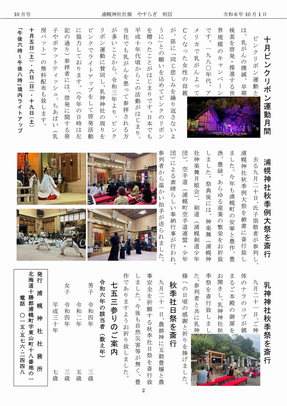 浦幌神社「やすらぎ短信」令和6年10月号発行