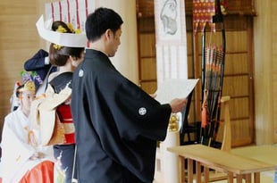 ご神前にて夫婦のご縁を頂いたことに感謝し、幸せな家庭を築いていくことを誓います。
