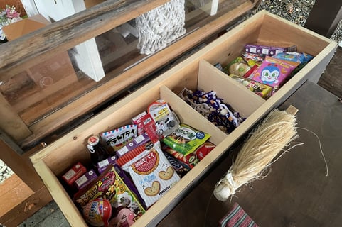 今日も水子神社の前には、各地から多くの方々が水子の慰霊に訪れ、子どもが喜ぶお菓子やジュース、御霊を慰めるお花などが供えられ、水子を想う親御様の真心こもる祈りが静かに捧げられております。